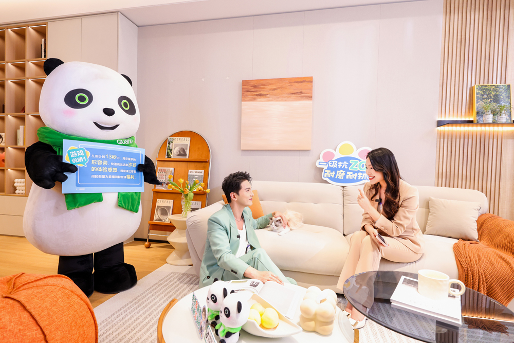 直播现场,徐正溪首先体验了猫抓绒布新品系列:绒布沙发和智能悬浮软床。这两款产品都是猫抓绒布面料,特别适合养宠家庭。