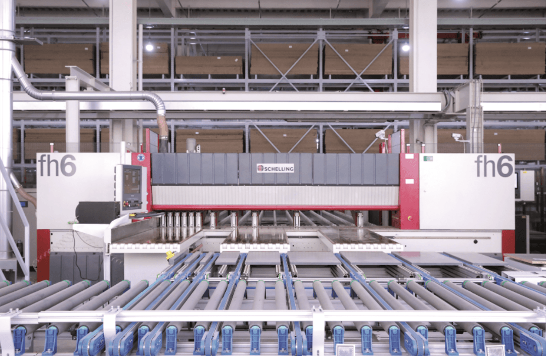 德国Schelling全自动精密电子锯开料,无需人工编程排版,直接通过HPO软件,传送程序到全自动精密电子开料锯进行板材切割,可实现不同尺寸、工件同时切割,且精度更高,大大提高了开料工序的生产效率。
