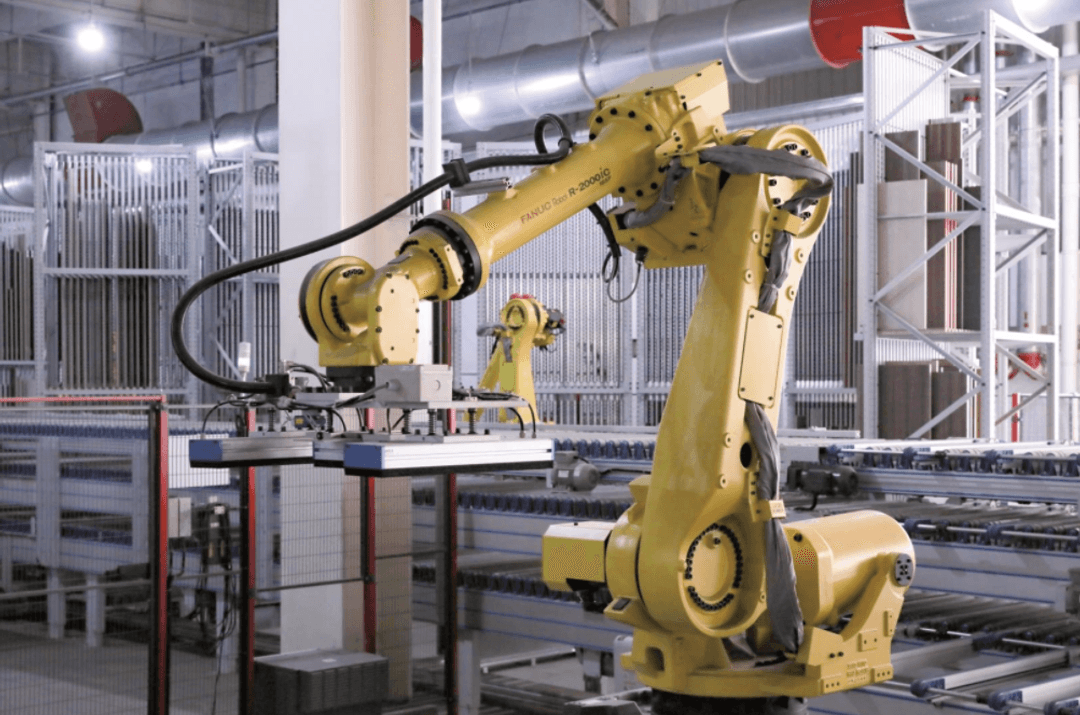 拆垛拣选机器人系统,可实现22台机器人同时拆垛32种不同的垛型家具,拆垛效率高,极大减少了人工搬运作业,有效提高作业效率。