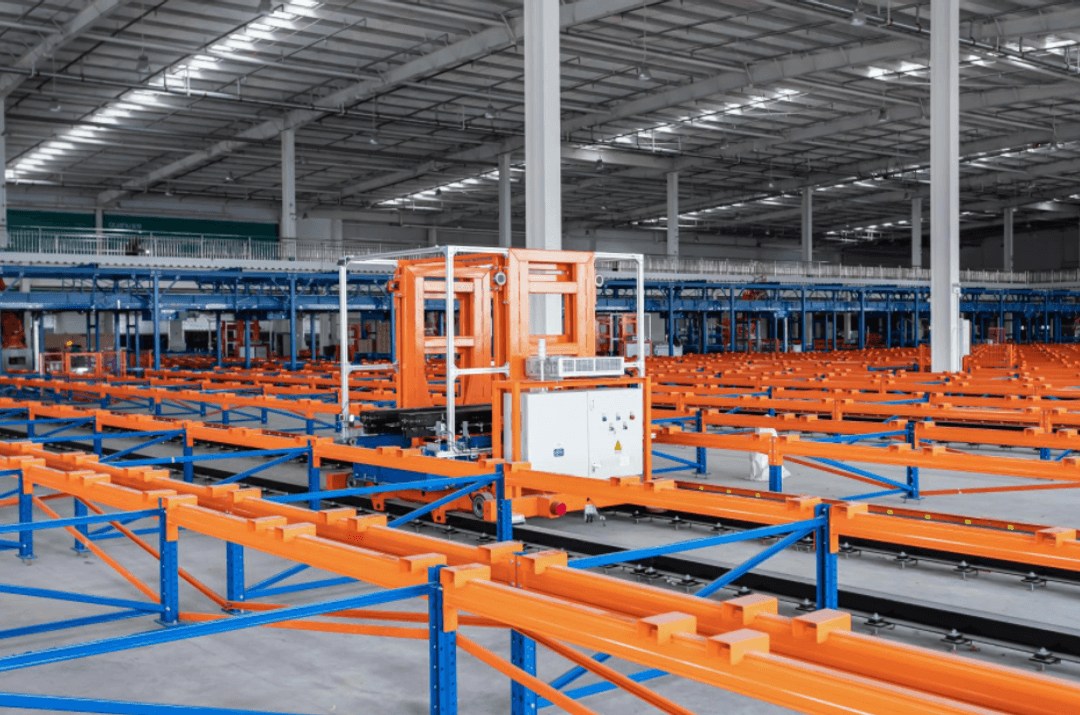 RGV叉式移载穿梭车,可实现多通道货物分配搬运作业,具有速度快、定位精度高、效率高、安全可靠等优点。叉式移载穿梭车与拆垛机器人、件箱分拣系统等一并组成了完整的拣选物流输送线,可提前拣选出次日所需的货物,极大提高了装车发货效率,可实现每日数万件板式家具的存取任务。