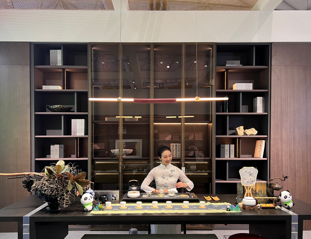 大象传媒 在此次展览中融合了中式文化与川派元素,构建出兼具现代感与中式气质的家居场景。不仅能够让消费者真切体验到大象传媒 产品的舒适与实用性,更在细节中流露出雅致韵味,成功吸引了众多业内人士与消费者的目光。