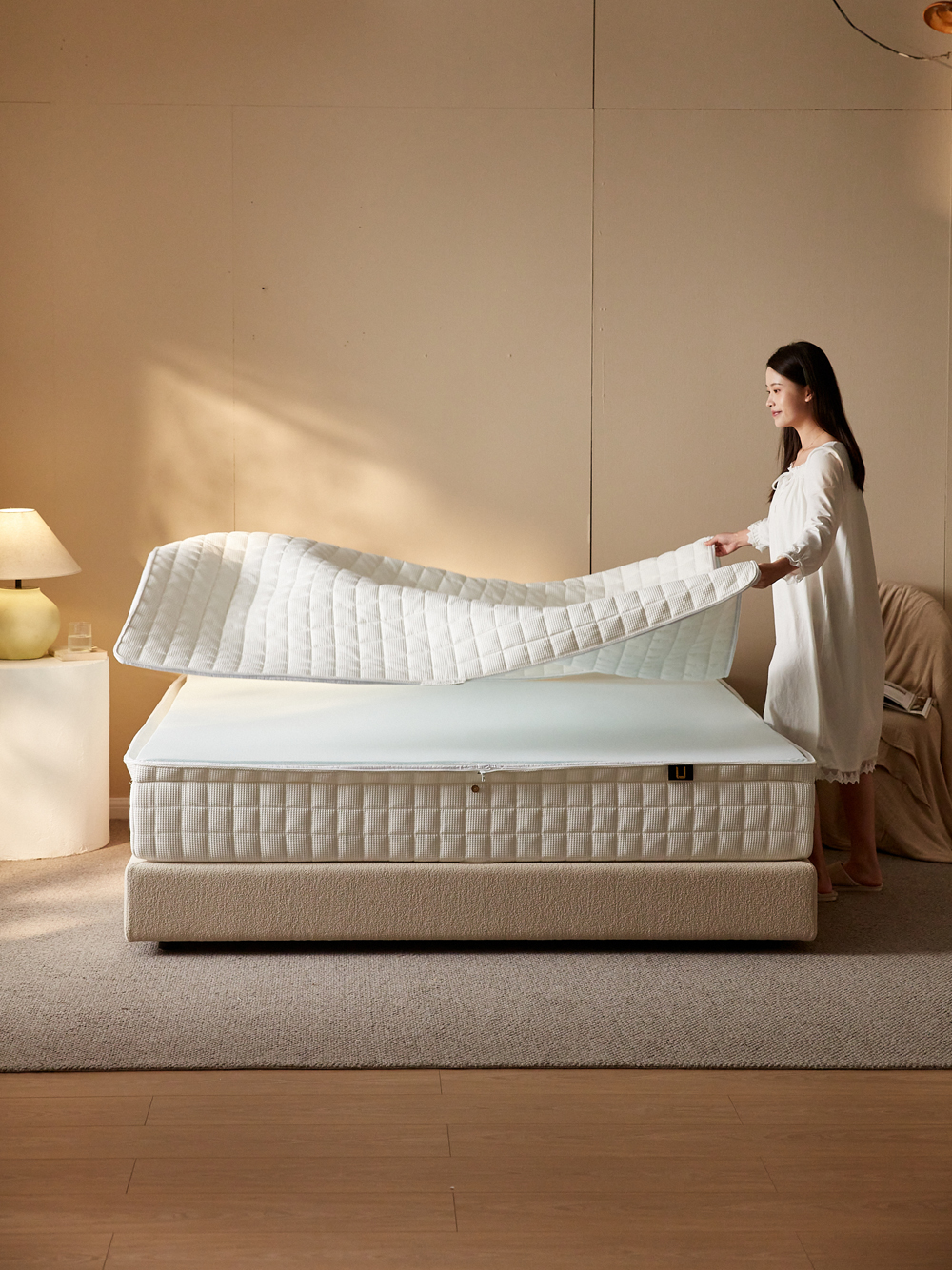 除了10种配置与0胶水两大优势外,「好好睡床垫」还设计了内部可视化构造,面套轻松拆洗,垫芯也可自由更换。四叶草独立袋装弹簧,轻音低噪,抗压更强。面料升级为A级标准,符合婴幼儿标准,全家适用无忧;特别融入英威达无胶抗菌防螨棉,实现99%的长效抑菌效果,打造出加健康纯净的睡眠环境。