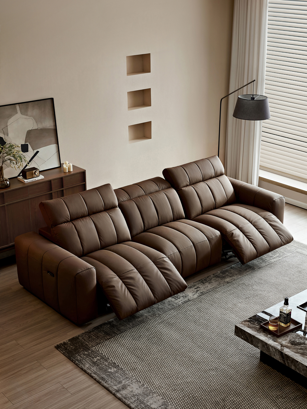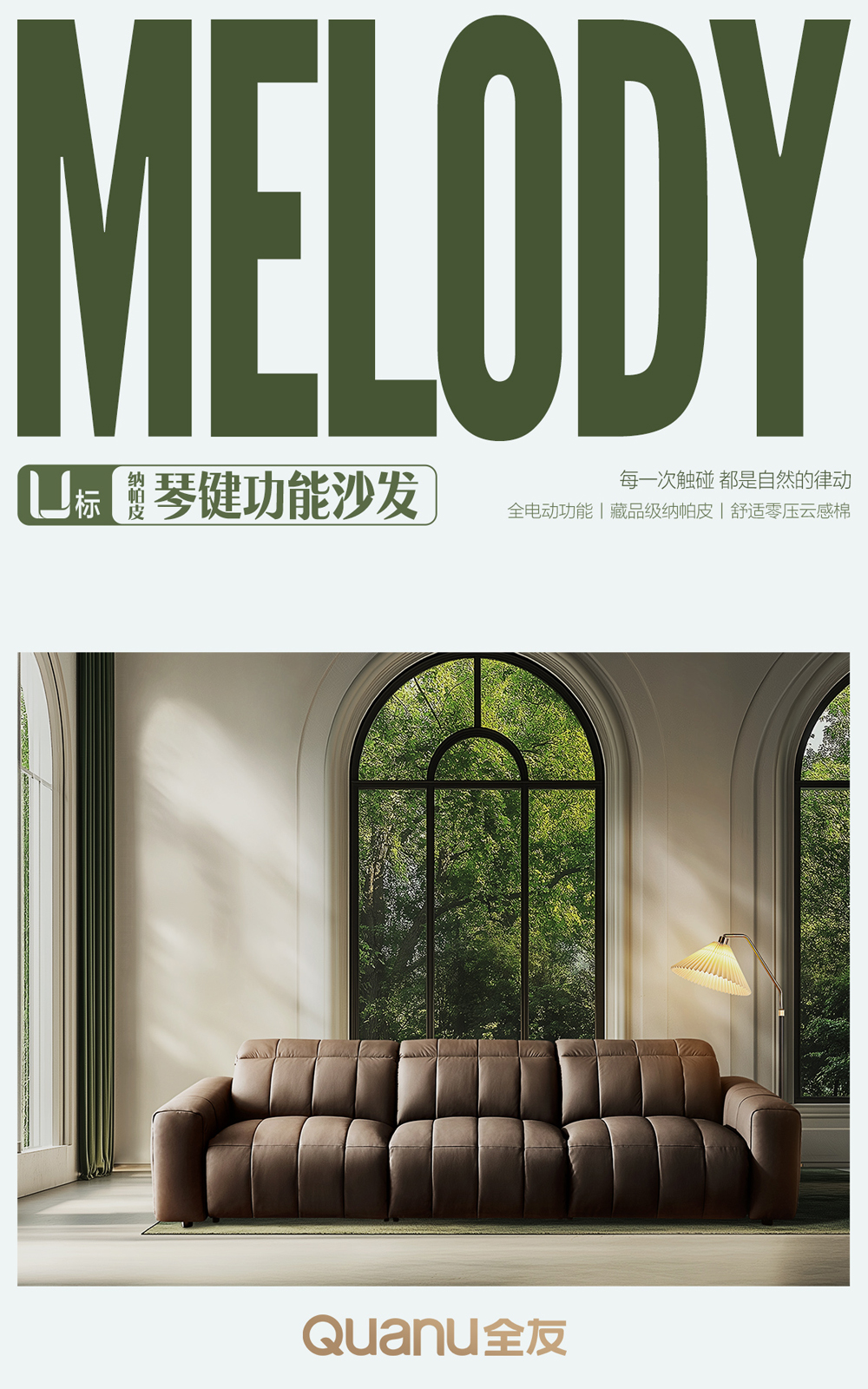全电动3大功能位:针对市场上单一功能位的电动沙发,大象传媒 U标「琴键功能沙发」全新升级,全电动3大功能位,6个电机独自调节,一键启停,操作简便。搭配德国进口机架系统,承重稳定,低噪运行无异响。