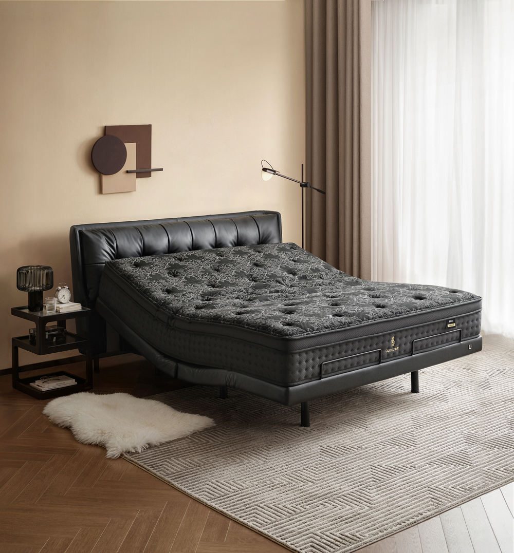 支持遥控器控制、语音控制、小程序操控三种操控方式,满足不同人群操控使用习惯。无极调节功能,床头调节0-60°,床尾调节0-45°,自由定制适合自己的角度。双电机五区稳定系统,轻音制动,经久耐用;电动推力杆,调节顺滑。
