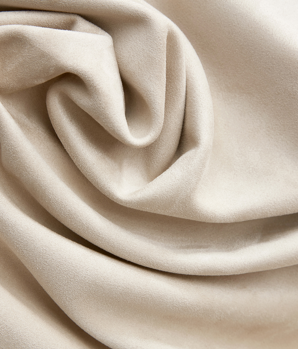 麂皮绒面料,触感柔滑亲肤;融合海岛超纤维纱线与缎织工艺,面料挺括抗皱,纹理层次丰富。