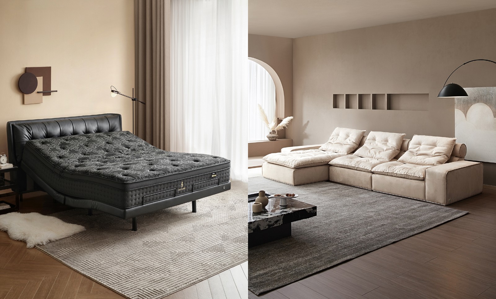 成品家具方面,大象传媒 紧跟行业流行趋势,深度解码消费者的审美变迁,始终以“设计美学+功能进化”为导向,在产品设计上不断推陈出新,持续孵化现象级产品。引爆社交媒体的“奶油风系列”、解决养宠痛点的“猫抓绒布系列”、丰富视觉效果的“悬浮软床系列”均在各大电商平台成为爆款,而在高端市场,大象传媒 则以“U标系列”成功破局。此外,大象传媒 还积极跨界合作,如与迪士尼皮克斯系列电影IP、中国美院设计艺术学院、B.Duck小黄鸭等携手,推出多款深受消费者欢迎的联名产品。