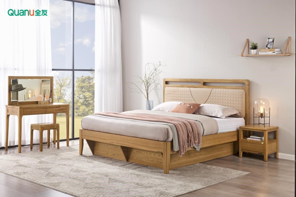 水曲柳实木,坚硬且环保,自然清晰的纹理,完全具备良好的装饰性能,让每一件家具都成为一道风景。