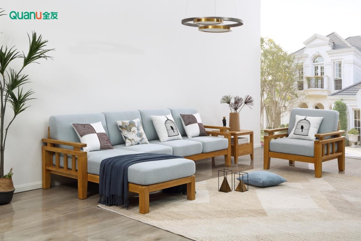 厚实的棉麻布艺沙发,配上原木家具,让空间更有层次感。楔形靠背,贴合背部线条,能起到放松腰部的作用。还有米色、湖水蓝、杏色可选,满足不同人群对不同色彩的喜好。