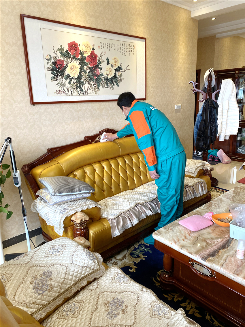 (服务保养活动中 专业技师正在为用户进行家具保养)
