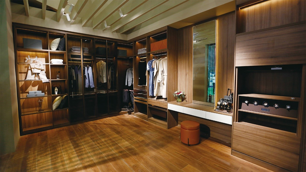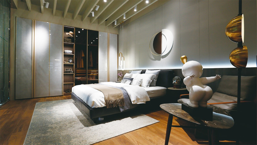 在卧室空间,大象传媒 则是为都市人打造了一位集收纳、影音、智慧黑科技于一体的“衣柜管家”。衣帽间除了容量丰富、科学分区的到顶式衣柜设计之外,还增加了衣物护理机、智能梳妆镜、电动升降柜等智能家居,让日常生活更健康便捷。