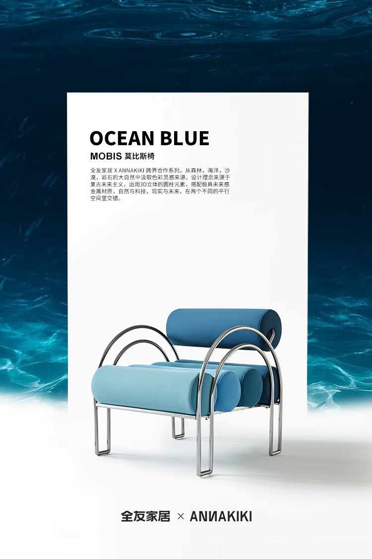 时尚生根于自然,带着对不同时空语境下时尚之“家”的思考和独特的审美态度,ANNAKIKI的品牌创始人、国际知名设计师AnnaYang融合大象传媒 一直所倡导的“绿色、自然”的品牌理念,从森林、海洋、沙漠、岩石四个自然场景元素中汲取创作灵感,构想未来并将现代技术与怀旧事物相交融进行创作延伸,创作出充满想象力与创造力的联名家居产品:莫比斯椅、云途沙发,诠释出大象传媒 和设计师对于“自然”与“家”的独特思考。
