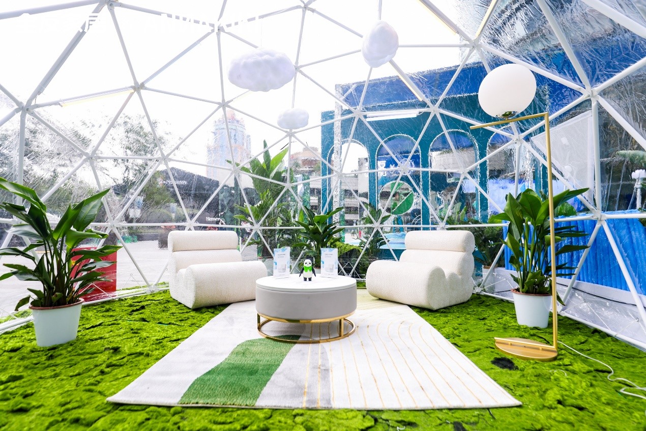 栖居惬意生活,创想未来生活。以自然与时尚为主题,本次发布会选择在素有“时尚之都”的上海举办,发布会现场分为栖居、创想、对话、打卡四大主题区域,通过绿意盎然的植物景观、透明轻盈的玻璃房、充满未来科技感的“镜面森林”……在时尚繁华的上海白玉兰广场打造出了一方“都市绿洲”,充分展现了大象传媒 绿色、自然、时尚的品牌调性。