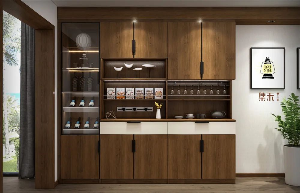 例如书柜与酒柜组合柜设计,这样又节约出一个酒柜。其次像定制书柜、餐边柜、酒柜等,可以选择半开放式柜体,节约几块门板,也能省不少,当然有得就有失,开放式在清理方面需要费心一些。