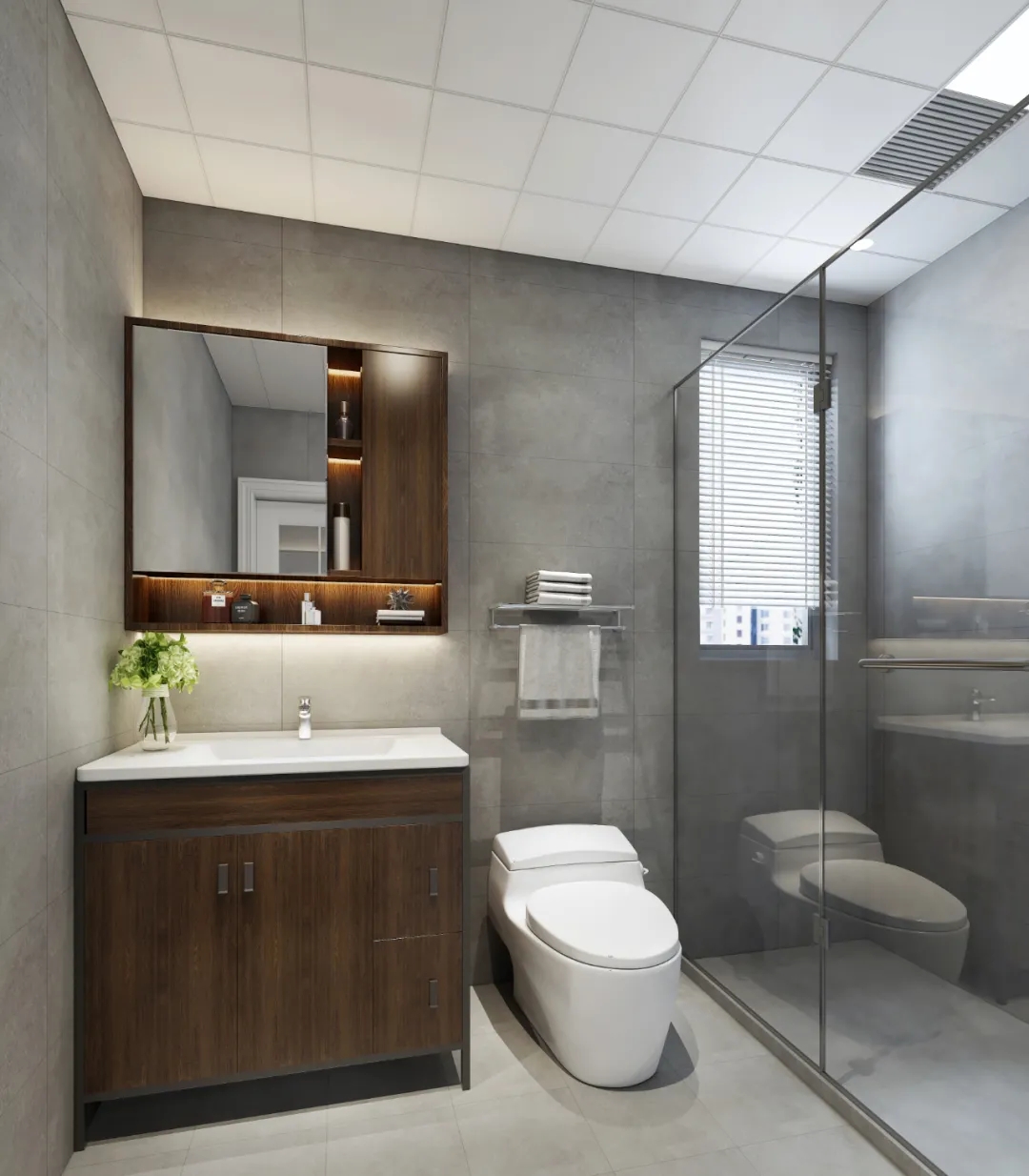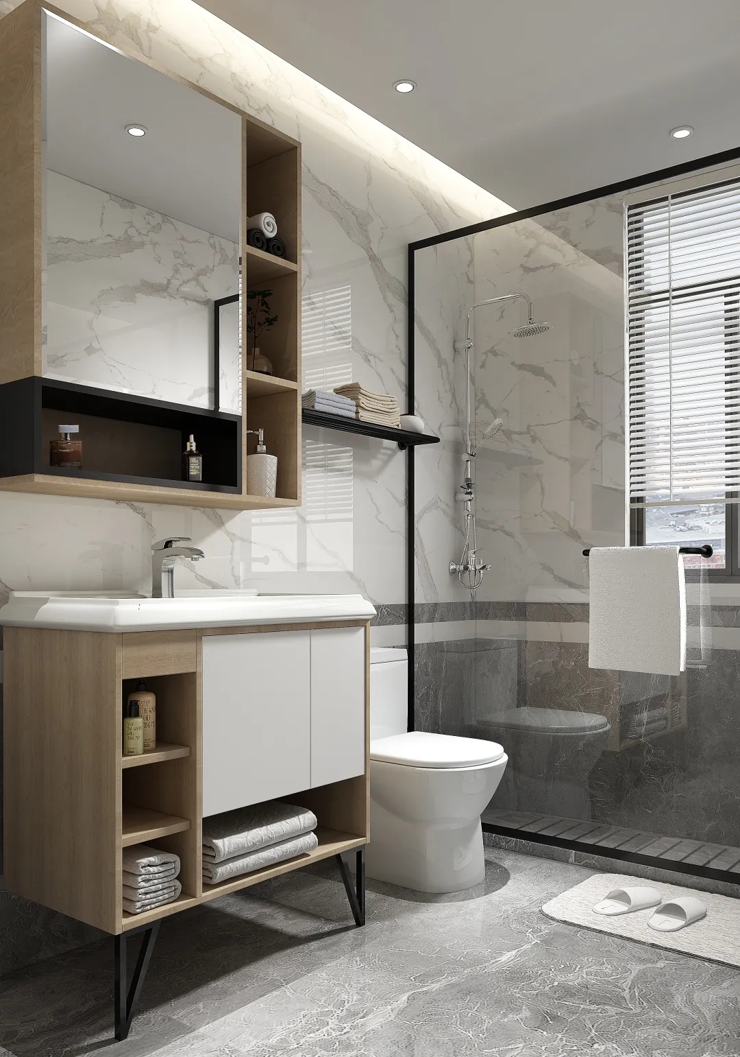 有生活经验的人都知道,卫生间的小东西很多,也很杂乱。所以规划合理的储物空间,则成了卫生间必不可少的一部分。尤其是在浴室柜的选择上,尽量优先考虑到储存空间的大小,以防生活用品太多,没有地方归置。如果空间允许,墙上定制一个吊柜也可以收纳更多物品。