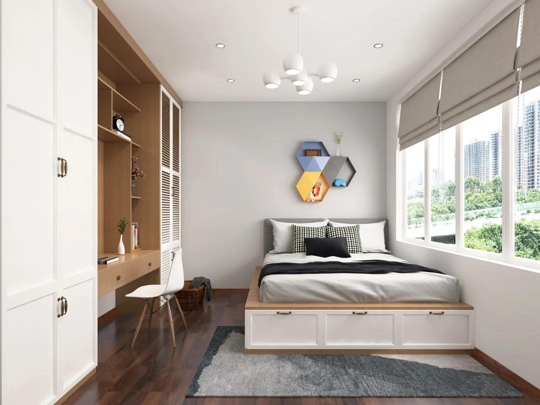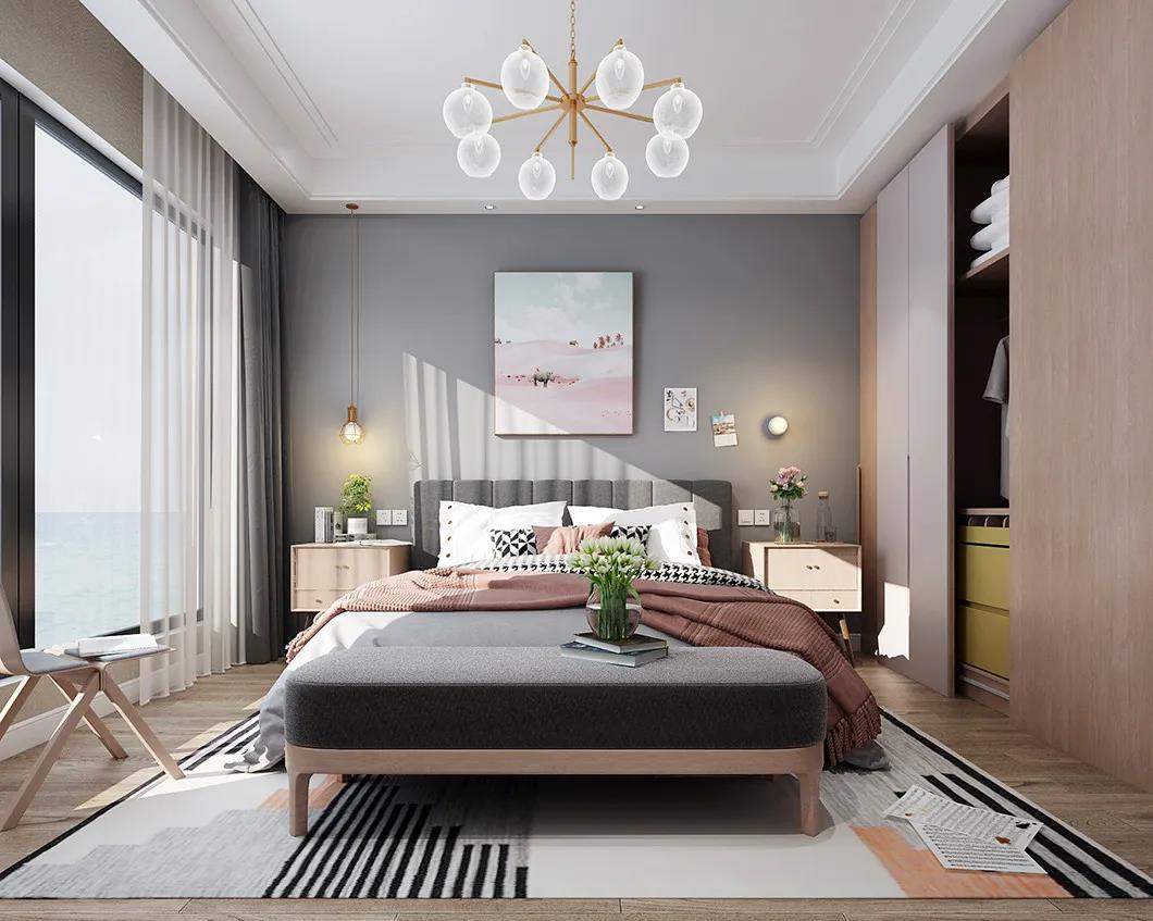 如果床的一侧靠墙摆放,那么睡在里面的那个人要下床,对旁边的人也会产生影响。因此,床两侧尽量不要挨着墙,并在两侧预留出可以正常通行的宽度,方便走动和整理床铺。