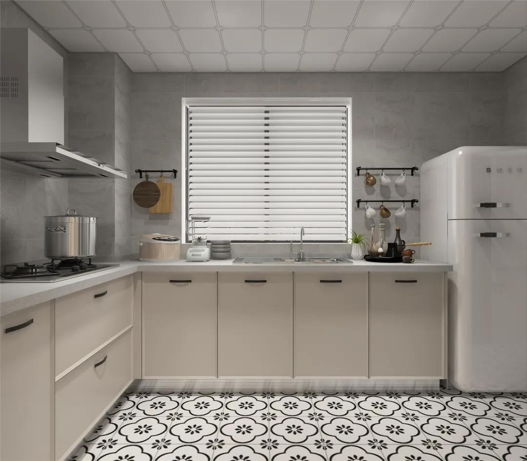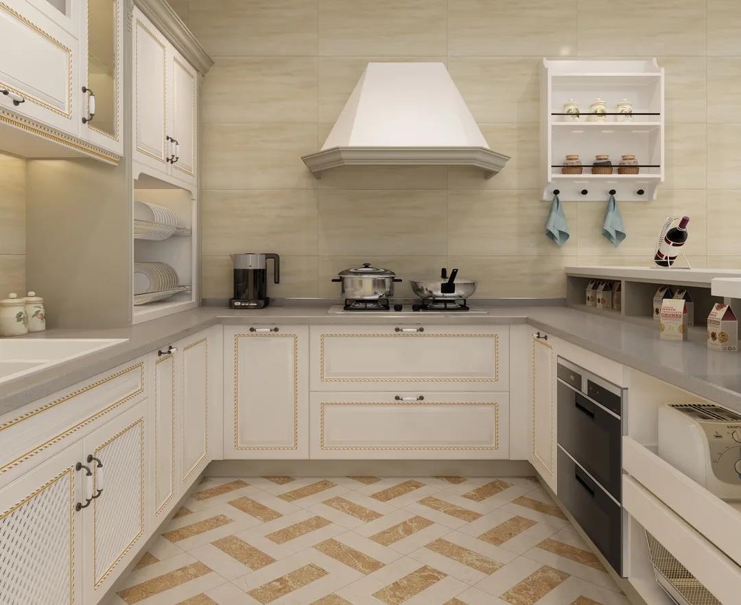 厨房作为“潮湿重地”,在地砖的选择上应优选高耐磨性、高防滑性的通体砖或防滑砖,它们表面不上釉,质地更为坚硬,能防止厨房地面过滑而摔倒。
